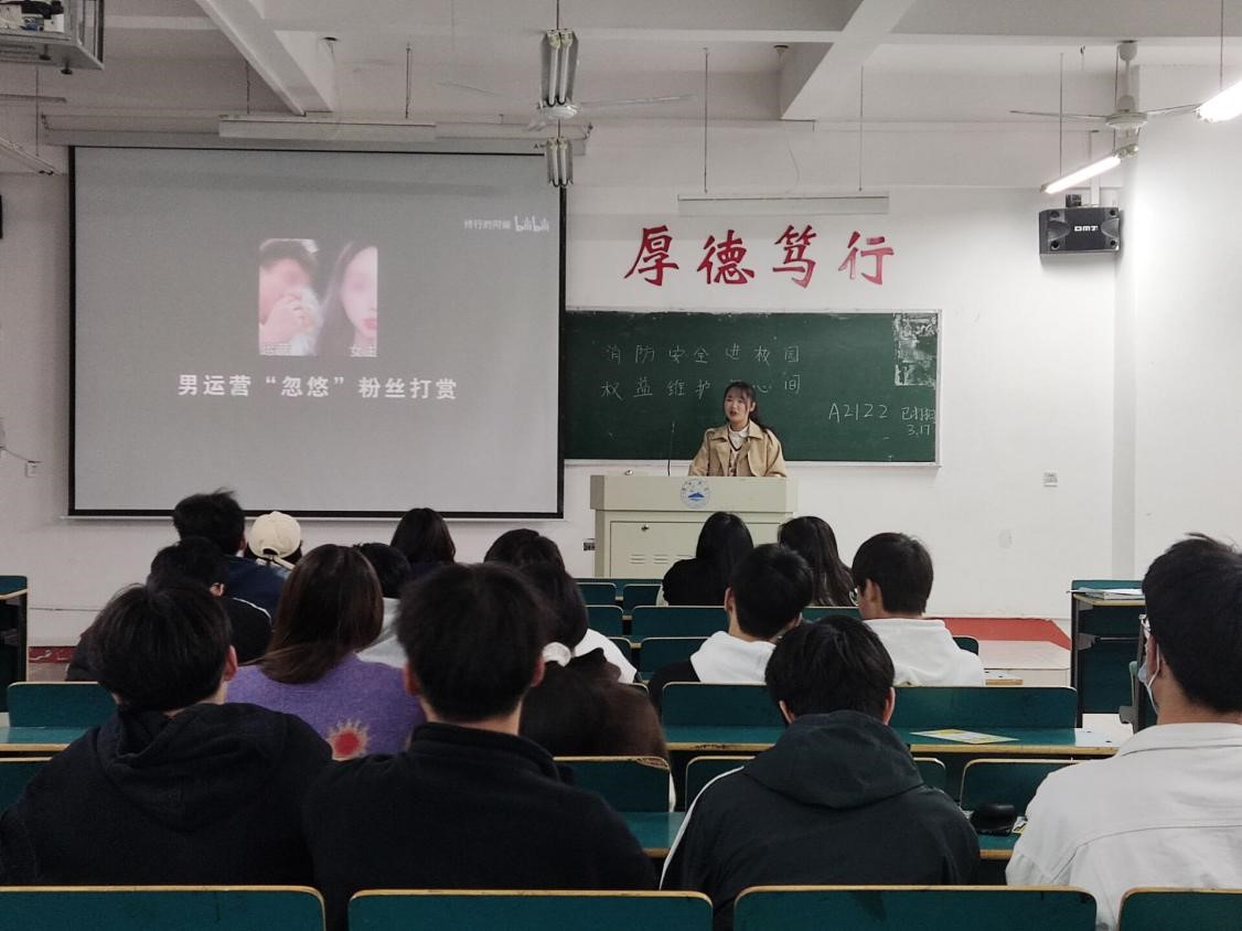 活动第一项,各班主讲人从理论出发,讲解了消防安全知识,结合相关案例,指出了违反消防安全的严重后果。活动第二项,强调了权益维护对大学生的重要性,提供了维权的渠道与方法。活动第三项,一同观看相关视频,领会消防员不怕牺牲,为人民服务的伟大精神。