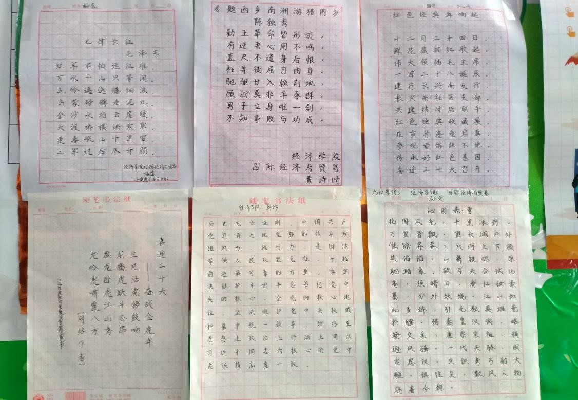 为弘扬中华传统文化,加深对书法的了解和认识,3月1日晚上七点,bw必威西汉姆联官方网站菁华国学社于义丰楼举办了以“我心向党喜迎二十大”为主题的书法活动。bw必威西汉姆联官方网站全体大一学子参加,优秀作品于义丰楼一楼大厅展示。