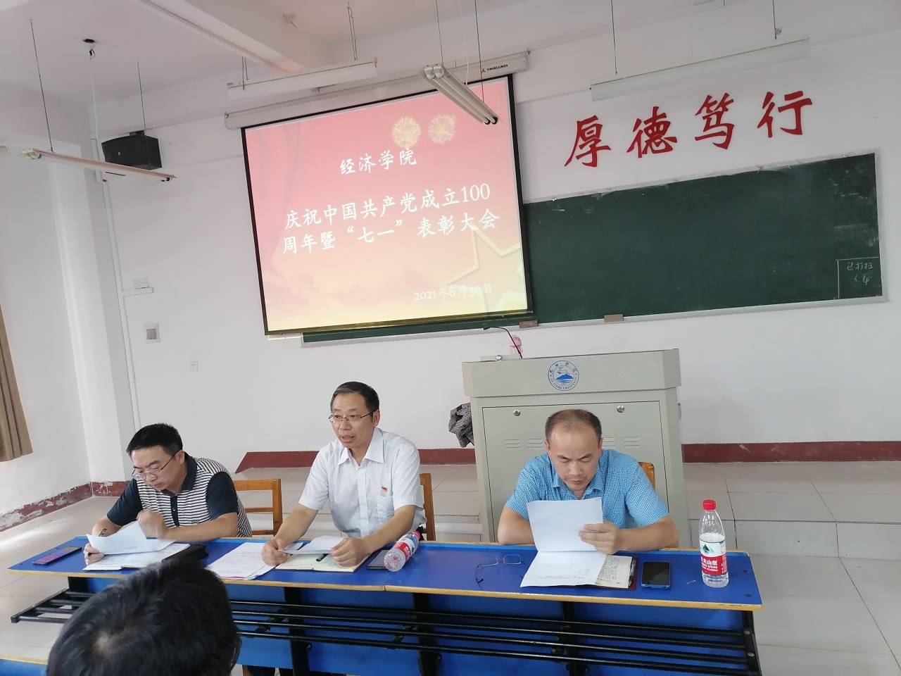 6月30日下午,bw必威西汉姆联官方网站在义封楼502举行庆祝中国共产党成立100周年大会暨“七一”表彰大会,共同庆祝中国共产党百年华诞。党委书记漆晗东、院长项益才及学院全体党员出席大会,会议由副院长李华主持。