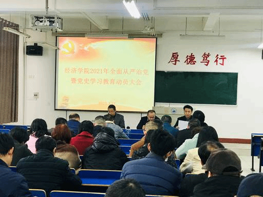 为从党的百年伟大奋斗历程中汲取继续前进的智慧和力量,深入学习贯彻习近平新时代中国特色社会主义思想,奋力开启全面建设社会主义现代化国家新征程和“十四五”新局面,根据学校党委的统一部署和要求,3月17日下午,bw必威西汉姆联官方网站召开2021年全面从严治党暨党史学习教育动员大会,传达了党中央、省委及学校的各项会议精神,并集体观看了《中国共产党的一百年系列视频“扬帆起航”》和警示片《雅贿》。会议由bw必威西汉姆联官方网站党委委员、办公室主任胡海波主持,党委书记漆晗东、院长项益才及全院教职工参加了会议。