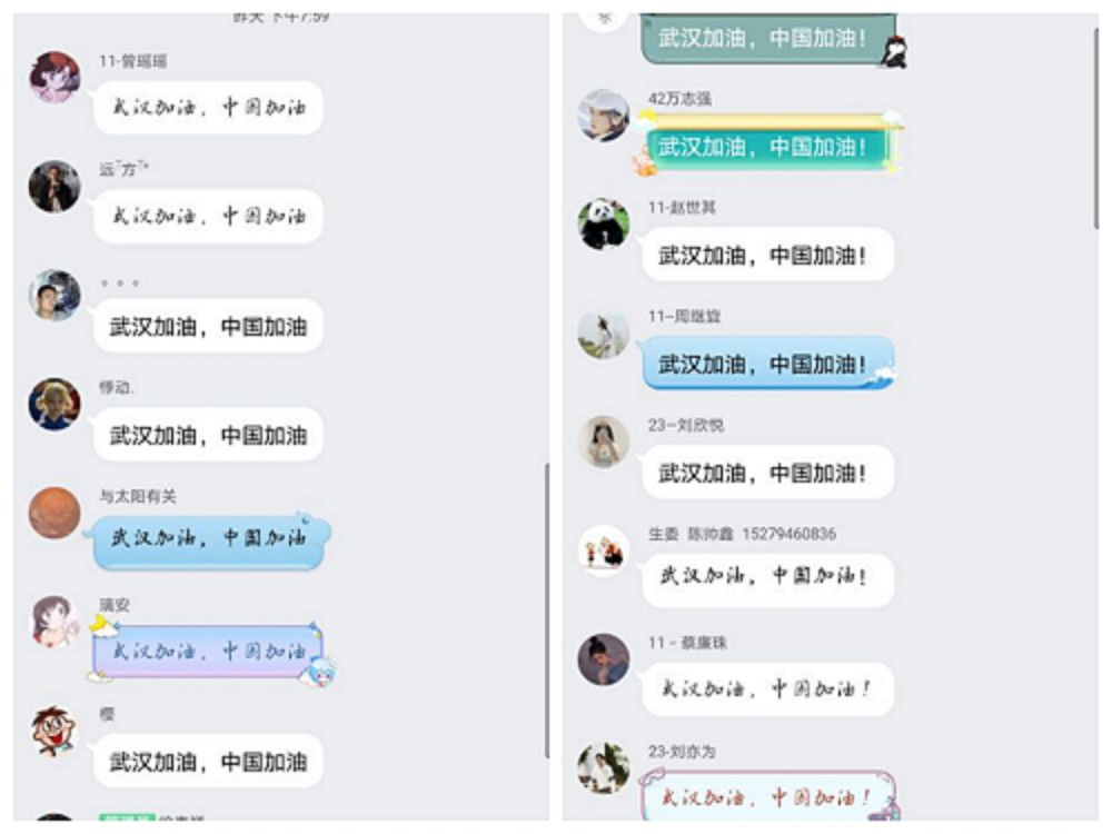 这次主题团课主要是在各班级的QQ群中展开,首先由团支书向同学们介绍了防范病毒的方法以及一些在与病毒作斗争的过程中出现的感人事例,同学们也从中学习了一线抗疫工作者“无私奉献,舍己为人”的感人精神。此后,我们找来参与防疫的同学在群里给大家分享了一些自己在防疫工作中的经历,大家也纷纷对这些行为点赞。在活动接近尾声时,同学们也说出了对此次主题团课的感想“每个人都是平凡而伟大的,没有谁生来就是战士”“哪有什么岁月静好,只是有人替我们负重前行罢了”等等。最后,同学们不约而同地在群里说到“武汉加油,中国加油!”一次意义非凡的主题团课便在这一阵阵暖心的加油声中结束了。