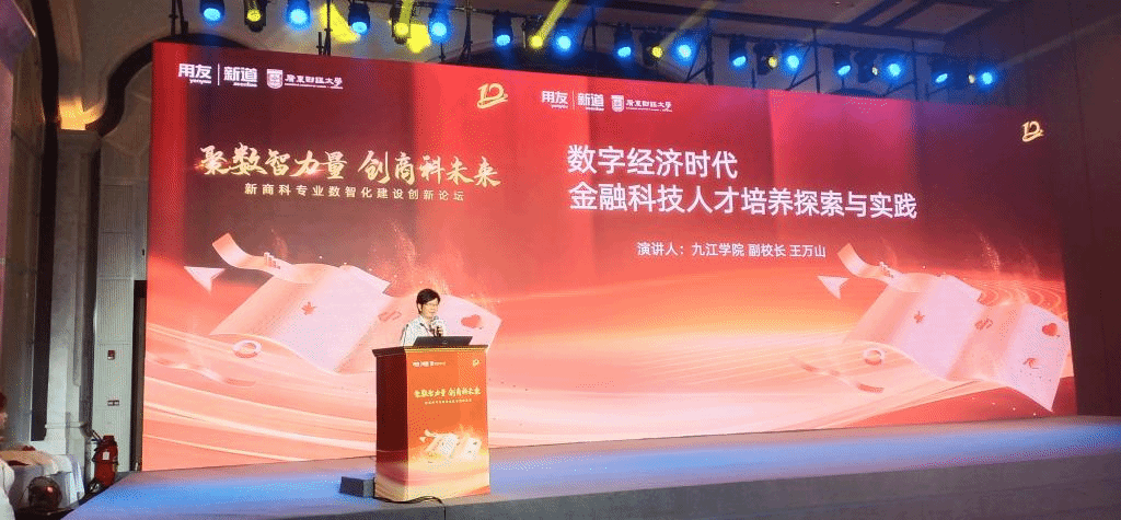 八月中旬,应用友集团的邀请,bw必威王万山副校长带领bw必威西汉姆联官方网站党委副书记谢忠等一行三人出席参加了由用友网络股份有限公司、新道科技股份有限公司主办的“担时代责任育数智新人——第十二届数智化人才培养产教融合发展大会”。会上王万山以“数字经济时代金融科技人才培养探索与实践”为主题发表了演讲。深入探讨了数字经济时代院校培养金融科技人才培养的实践与路径,受到与会者的赞赏。