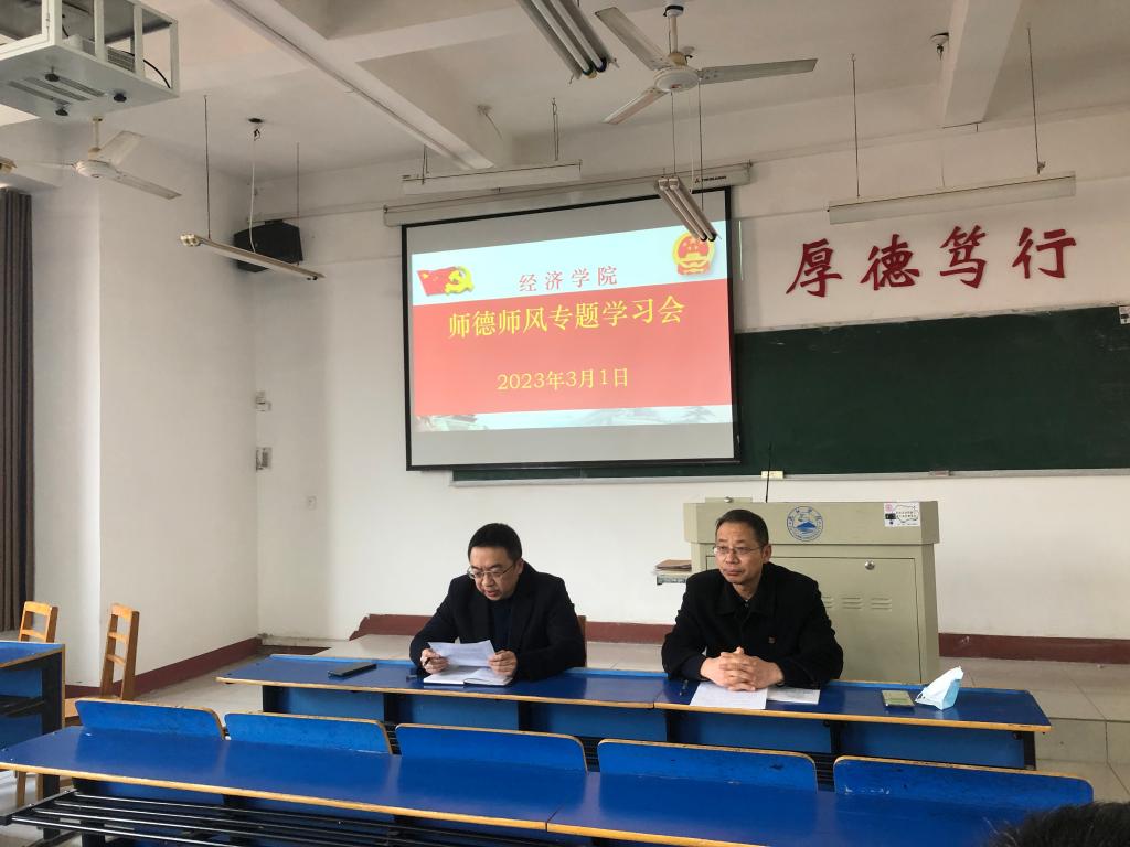 3月1日下午,学院党委书记漆晗东在义丰楼502主持开展三月份政治理论学习和师德师风专题教育活动,全院教职工参加了活动。