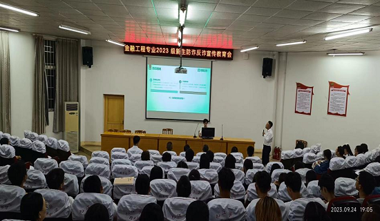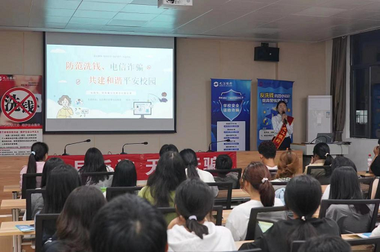 9月份开学季,bw必威西汉姆联官方网站先后邀请中国邮政储蓄银行、九江银行、中国农业银行、国新证券等银行金融机构,通过发放宣传页、专门讲座、情景剧沉浸式演绎、主题班会等多种方式“以案释法”,对校园中常见的刷单诈骗、网络交易诈骗、冒充熟人诈骗、网络贷款诈骗、网络交友类诈骗等常见诈骗手段的新形势、新手法进行详细解读,并结合学生实际群体重点讲解了非法出租、出售自己的银行卡、身份证等证件供他人使用的行为造成的危害等。