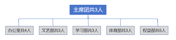 2.改革运行机制:工作机构框架为“主席团+工作部门”模式,实行轮岗制度,以学期为一个轮值周期,执行主席负责召开集会议,牵头日常会议。不设置主席和副主席,设执行主席。