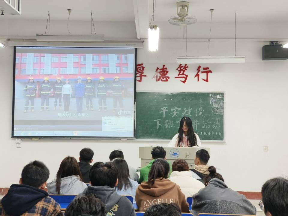 消防意识,必不可少。本次活动中,青年志愿者们事先分好八组,有序前往所分配的班级,将事先通过网上查阅的方式寻找相关消防视频所制作成ppt向同学们进行消防安全意识的宣传。志愿者们通过有趣的消防安全视频,绘声绘色地向同学们展示火灾的破坏性以及防火灾懂消防的重要性,其次,通过与台下同学的互动,同学们的积极回答有力地将此次活动推向高潮,志愿者们特意强调宿舍用电安全,通过展示错误宿舍用电图片,例如:排插上连着不同电器的插头,排插放在床上,使用大功率电器,重点指出了大多宿舍容易犯的用电问题,同时将常见的宿舍用电隐患指出,无疑对学生用电安全提供了有力保障,同时,在同学们就消防灭火,逃生方式的激烈探讨声中,无疑是对同学们进一步加深消防安全意识,强化防火灾心理的莫大帮助。