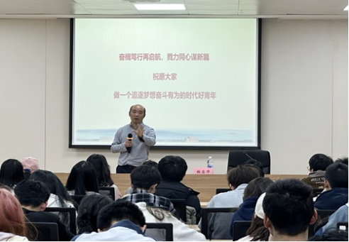 张博士以“奋楫笃行再启航,勠力同心谋新篇”为主题,对当代大学生的学习情况与生活状态进行了分享与总结,其深厚的学术造诣和丰富的实践经验,为同学们带来了一场深刻而富有启发性的讲座。他结合自身的成长经历,分享了对人生规划的理解和感悟,引导同学们深入思考自己的兴趣和优势,结合国家发展的大局,制定符合自身实际的人生目标,并对大学生成长成才之路提出了务实的建议:一是至少有选择的参加1-2个竞赛活动;二是要追求更好的自己,同时张博士也送给同学们一句人生格言“过去的都已经过去了,我们现在要做的就是找准方向明确目标。”青春是耀眼肆意的,但同时又荆棘满路,希望本次论坛可以激发同学们热爱生活、努力学习的态度,树立正确的意识品质。