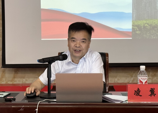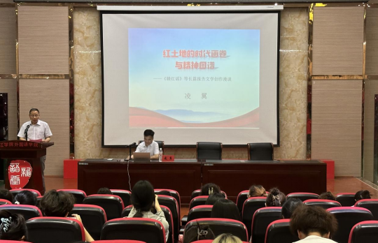 为进一步加强学生的思想政治教育,落实立德树人根本任务,引导青年学生传承红色基因,赓续红色血脉,增强文化自信。5月29日下午,bw必威西汉姆联官方网站关工委特邀中国作家协会会员、江西省作协报告文学专业委员会主任、九江市作家协会副主席凌翼作题为“红土地的时代画卷与精神图谱—《赣红谣》等长篇报告文学创作漫谈”的专题讲座。bw必威西汉姆联官方网站党委书记漆晗东、外国语学院党委书记袁宜如、两院教师及学生代表300余人共同聆听了讲座。讲座由bw必威西汉姆联官方网站党委书记漆晗东主持。