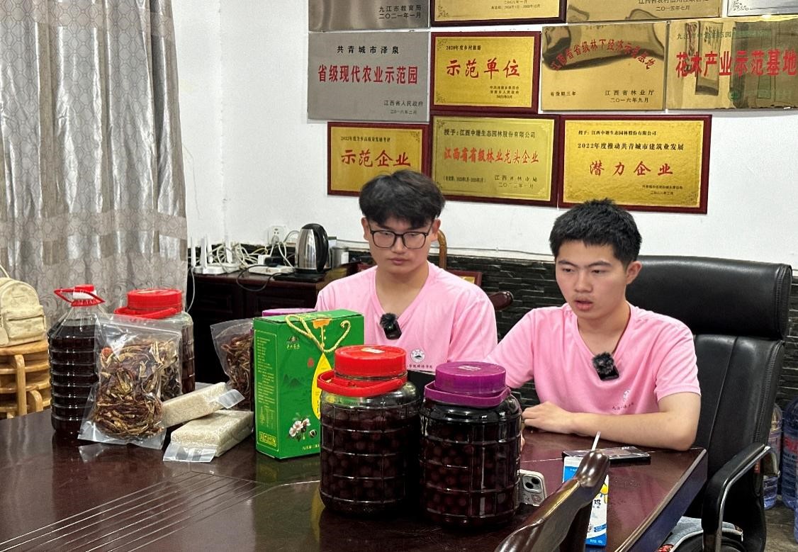 7月3日,精益求“经”暑期“三下乡”社会实践服务队联合泽泉乡共同开展富有特色的直播助农暑期社会实践活动,树牢助农强农兴农“价值坐标”。直播时,泽泉乡当地特色的手工农产品依次亮相,有大米、菜籽油、杨梅酒、辣椒干、茄子干。主播们从制作过程、产品品质等方面向观众推介,与直播间的粉丝观众交流互动,向他们介绍每个产品的色泽、口感,现场氛围感十足。