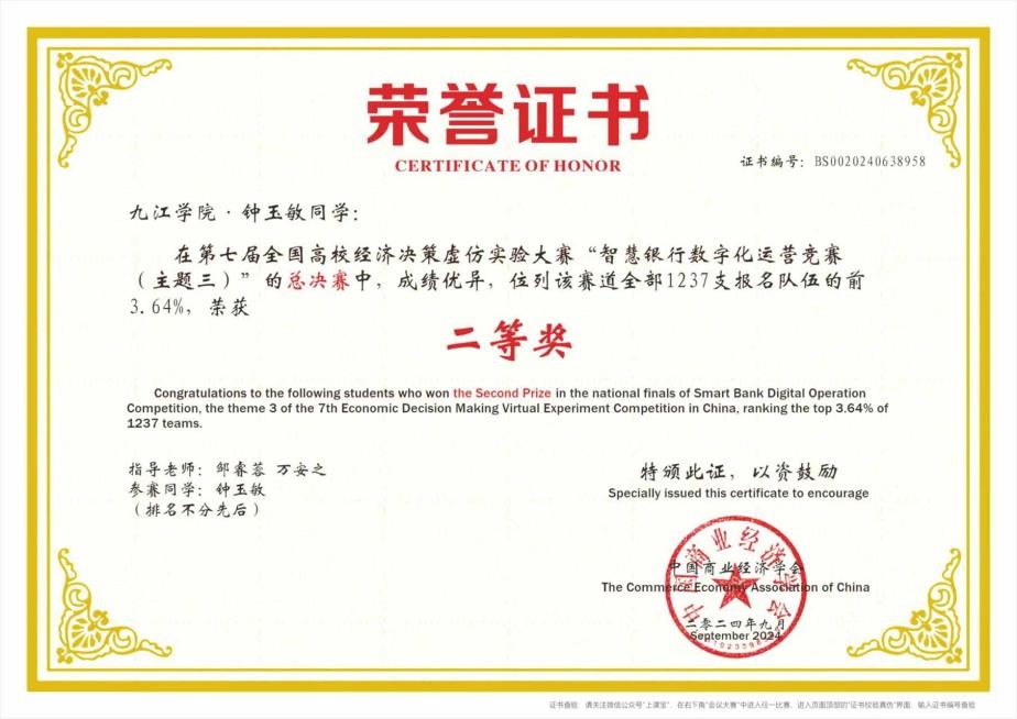 近日,第七届全国高校经济决策虚仿实验大赛“智慧银行数字化运营竞赛”全国总决赛落下帷幕。最终bw必威学子凭借过硬的理论知识、出色的运营能力斩获全国一等奖1项、二等奖1项、三等奖3项。