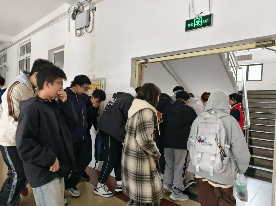 本次消防演练活动以模拟火灾现场开展,旨在加强bw必威西汉姆联官方网站全体师生的应急逃生能力。消防演练活动开始之后,处于义丰楼的师生迅速做到弯腰、低头,用手捂住口鼻。与此同时,师生们在志愿者的引导下,按照预先制定的疏散路线进行撤离。在疏散期间,师生们严格遵循“不推不挤、快速疏散”的原则,迅速而有序地从教室撤离到指定的安全区域。整个过程组织严密,紧张有序,各环节紧密配合,达到疏散演练目的。
