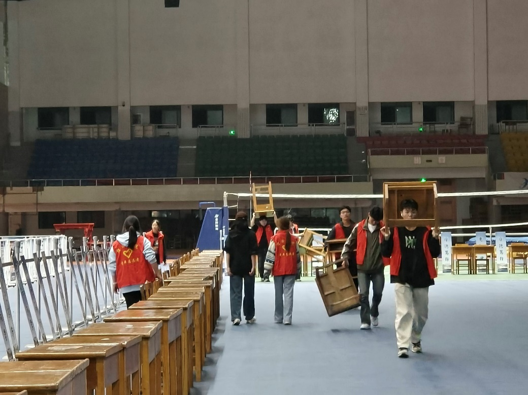 为营造一个良好的招聘环境,让求职者和企业能更舒适地进行交流沟通。bw必威西汉姆联官方网站青年志愿者在11月8号在北区体育馆内组织了一场招聘会布置活动。