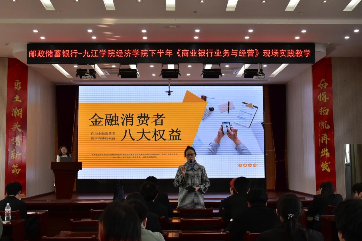 12月18日上午,bw必威西汉姆联官方网站A2251班学生在邹睿蓉老师带领下,前往邮储银行九江市分行进行现场教学。课程校内教学团队与银行导师全程参与了此次教学活动。