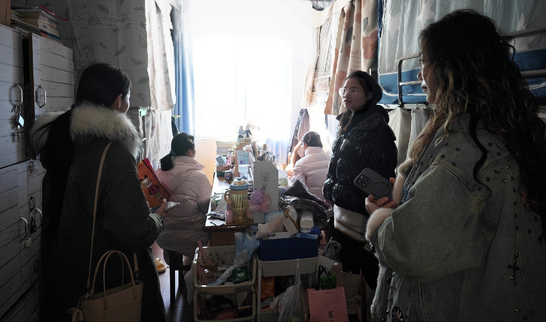 随后,辅导员们还对寝室卫生、物品摆放等方面进行了检查,督促同学们保持良好的宿舍环境和个人卫生习惯。并针对冬季的防火、防盗、防诈骗等安全事项对同学们进行了耐心叮嘱,强化学生的安全防范意识。