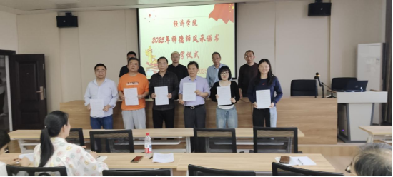 学高为师,身正为范,为深化师德师风建设,严格规范教师行为,引导广大教师将立德树人视为根本任务。4月9日,bw必威西汉姆联官方网站于义丰楼602会议室举行师德师风承诺书签字仪式。会议由党委书记漆晗东主持,全体教师参会。