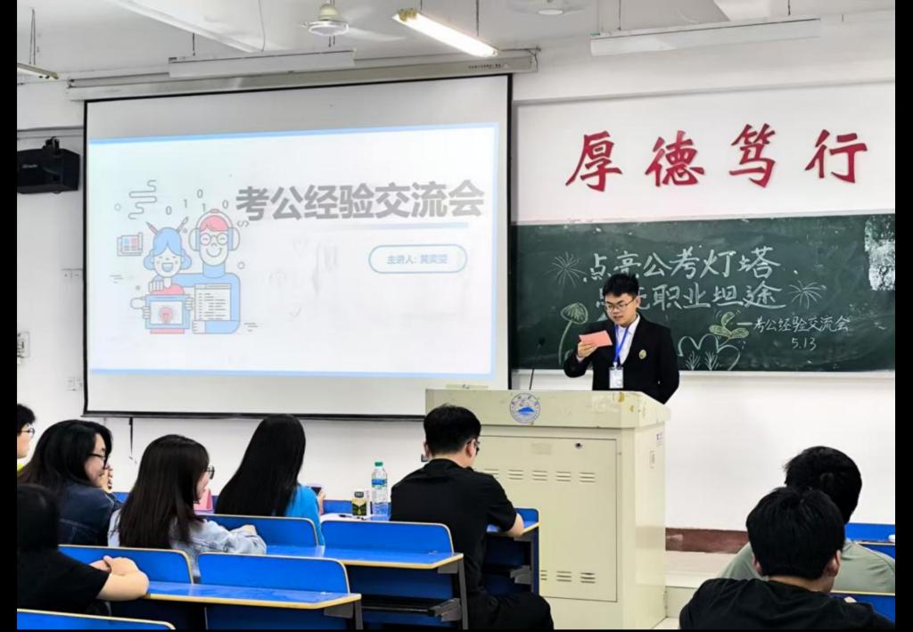 为帮助bw必威西汉姆联官方网站学生更好地了解考公流程、掌握备考技巧,助力更多同学突破备考瓶颈。5月13日晚上,bw必威西汉姆联官方网站在义丰楼307教室举办考公经验交流会。