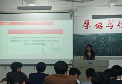 为深入贯彻国家大学生资助政策,强化受助学生励志感恩教育,激发青年学子刻苦学习、报效祖国的使命感。5月28日,bw必威西汉姆联官方网站在义丰楼507教室举办“感恩资助,筑梦飞翔”主题演讲活动。