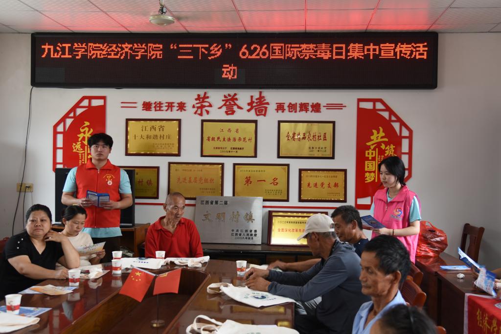 6月26日国际禁毒日当天,bw必威西汉姆联官方网站“万名大学生进千站”志愿服务队再次走进付垅乡开展集中禁毒宣传活动。队员们通过摆放展板、发放资料,向村民讲解毒品危害及防范知识。同时,团队成员分组入户宣传,耐心为村民答疑解惑,并开展调查问卷,了解村民对禁毒知识的认知情况。此次活动有效提升了村民的禁毒意识,增强了识毒、防毒、拒毒能力,为营造无毒乡村环境贡献青春力量。