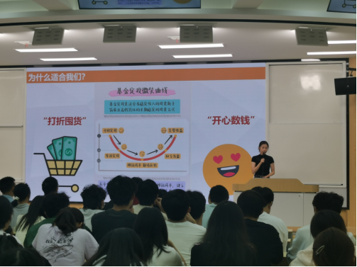 随后,邮储银行总行级资深理财讲师段园婧凭借其丰富的市场实战经验,用生动活泼的语言、详实具体的案例,系统地阐述了商业银行财富管理业务之一--基金定投的基础概念、资产配置策略以及风险控制要点。授课内容深入浅出,紧扣当前市场热点,将复杂的金融知识转化为易于理解的实用信息,极大地激发了同学们的学习兴趣。