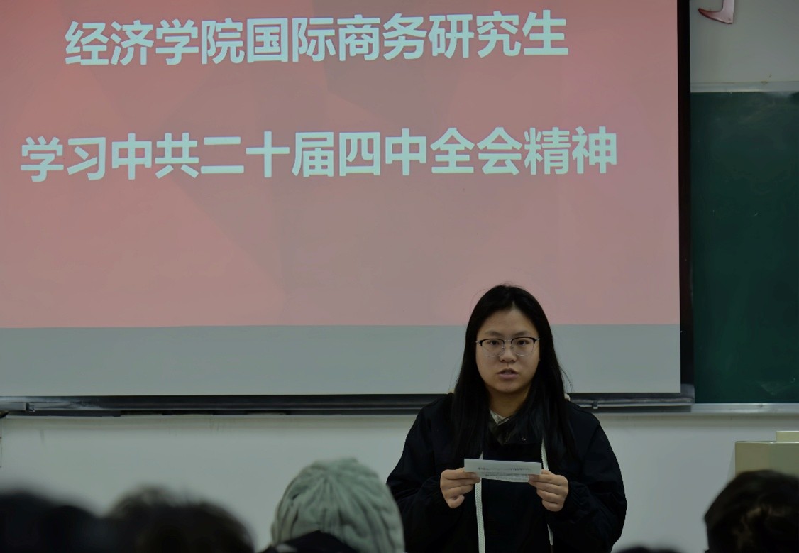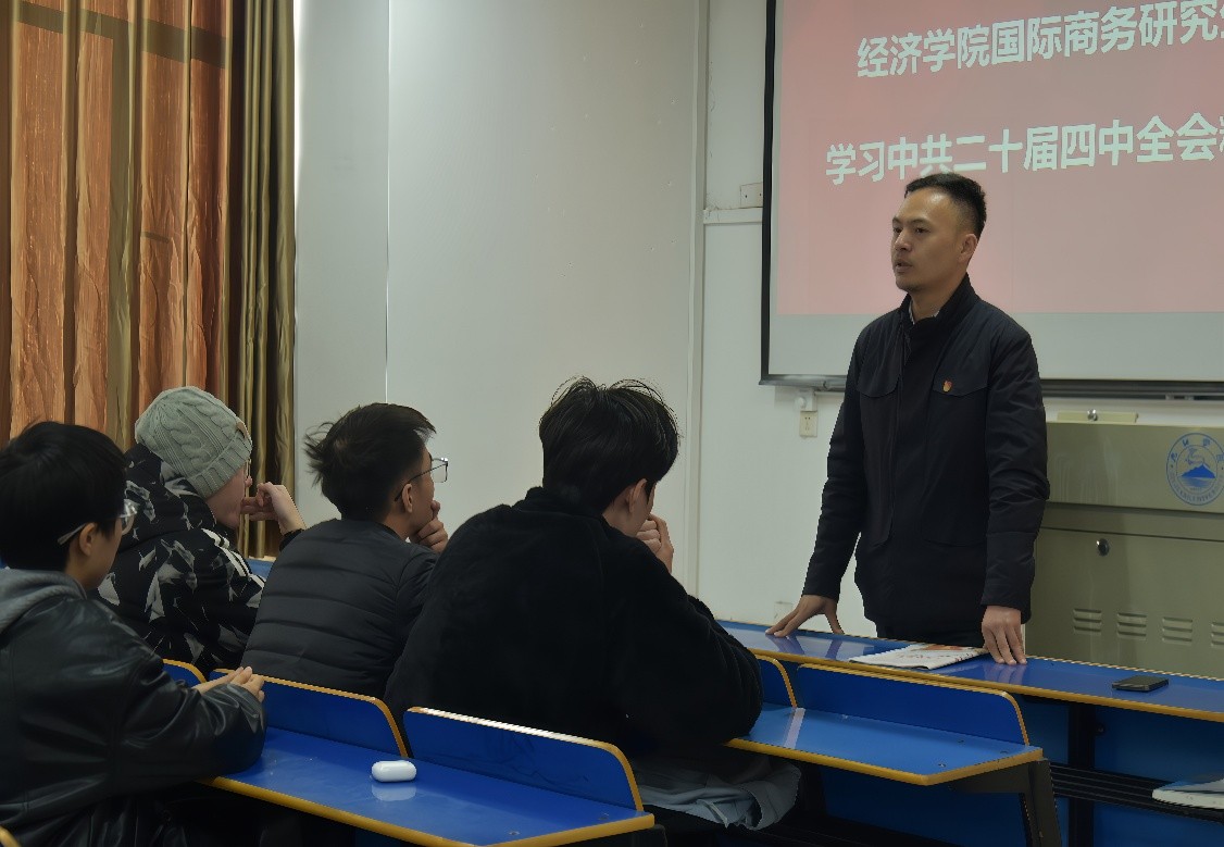 为深入学习贯彻中共二十届四中全会精神,引导青年学子将理论学习与专业实践相结合,11月21日下午,bw必威西汉姆联官方网站开展中共二十届四中全会精神学习活动,全体国际商务专业研究生参与交流学习。