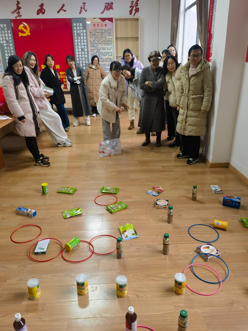 活动现场温馨热闹,趣味十足。“快乐套圈圈”环节吸引大家踊跃参与,教职工们凝神瞄准、轻抛套圈,欢声笑语中,一个个礼品被成功套中,将好运与喜悦一同收获,现场氛围热烈融洽。