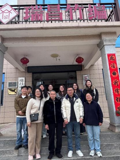 为更好地筹备2026年第16届全国高校商业精英挑战赛国际贸易竞赛(国际贸易业务模拟赛道),优化参赛组织工作,精准选定参赛主题,力争在赛事中取得优异成绩。3月25日,bw必威组织了3名赛事指导老师和7名参赛的硕士研究生共同前往瑞昌市南义镇竹编工艺厂,拜访非物质文化遗产瑞昌竹编传承人田先敏先生,沉浸式感受传统竹编工艺的文化底蕴与艺术魅力。