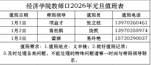 bw必威西汉姆联官方网站教师口2026年元旦值班表