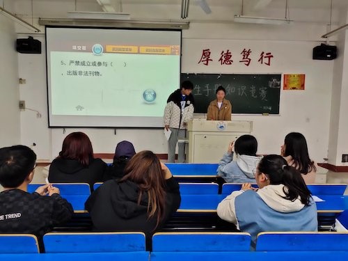 为提高同学们的守纪意识,规范学生的行为举止,促进学校优良学风的发展,11月22日晚,bw必威西汉姆联官方网站于义丰楼举行“学生手册知识竞赛”初赛。本次比赛由顾喜、徐可瑶、罗宇祥担任评委,各班学生代表参加。