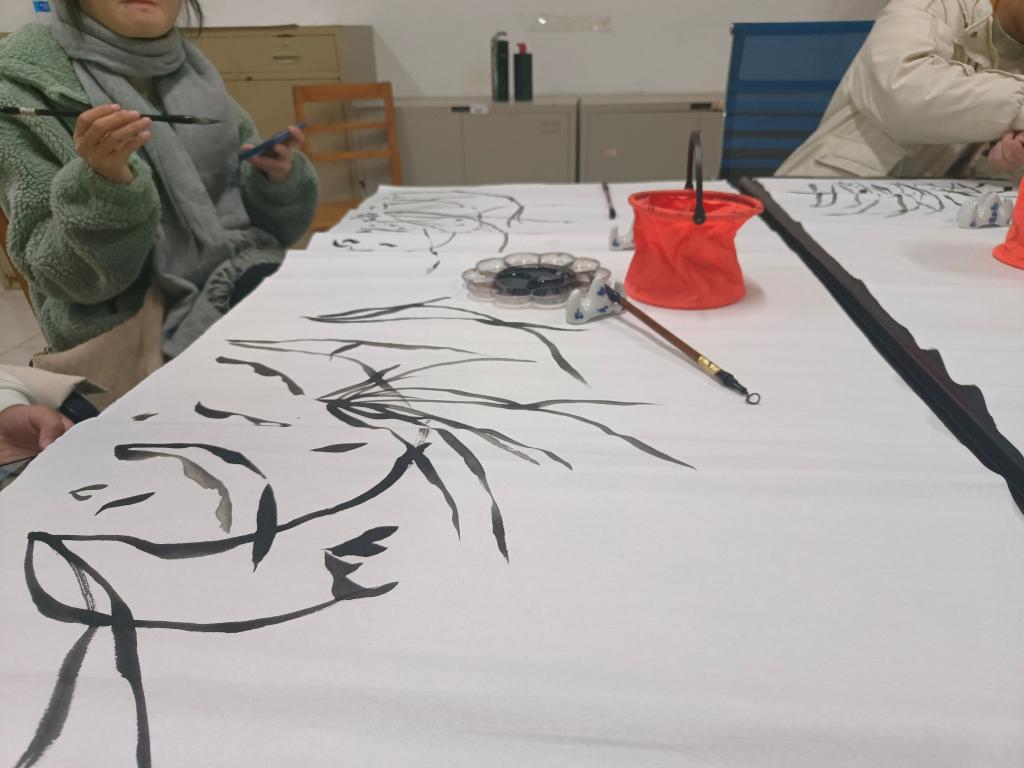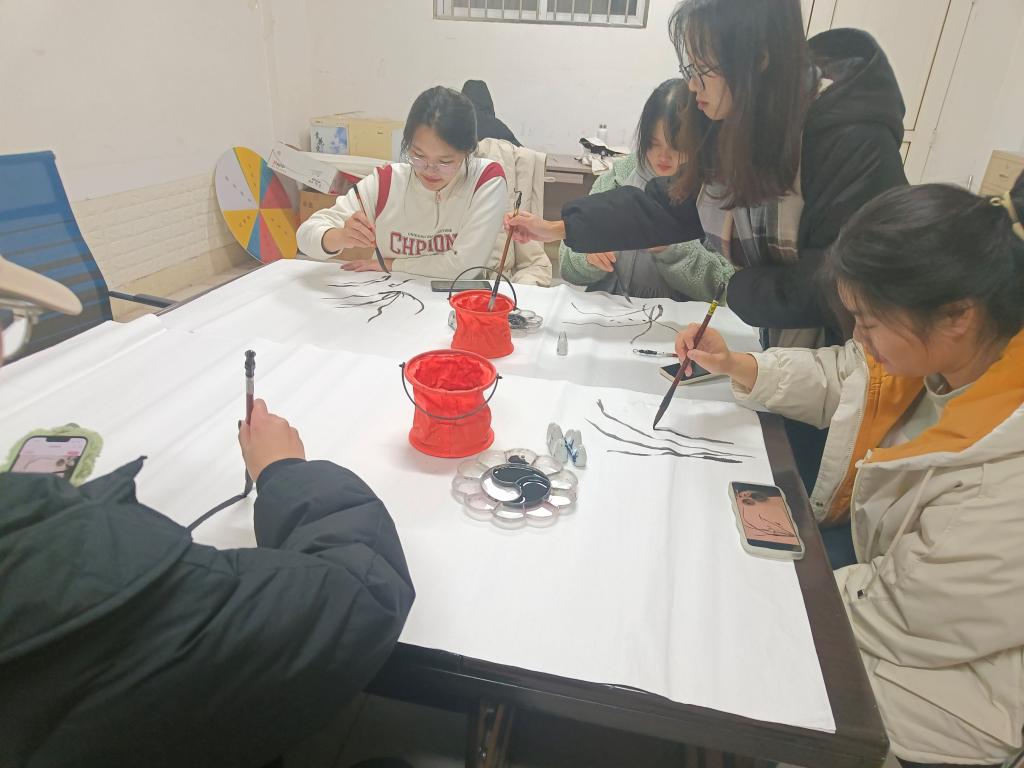 国画部在活动中,各个成员十分积极地探讨国画知识,并且进行了绘画初体验,耐心地听讲解要点,收获颇多.