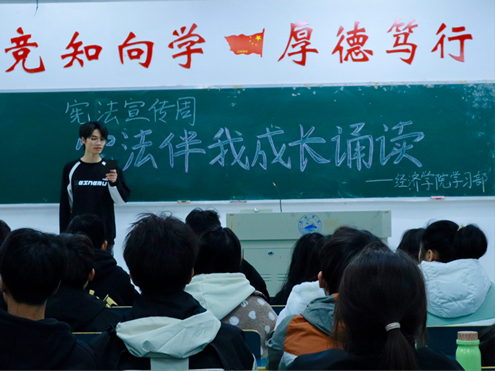 活动中,演讲者们分享自己与宪法的故事,以热情激昂的语言,丰富饱满的情感深深地表达了对宪法的敬畏之心,向同学们传达宪法是国家的灵魂,是人民权利的保障这一思想,引导同学们树立正确的法治观念。在演讲者热情的渲染下,听众的情绪逐渐高涨,也更深入地了解宪法,明白宪法在国家治理中的核心地位。