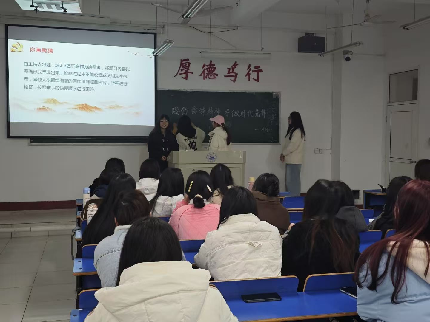 活动伊始,主持人以讲解雷锋事迹纪录片的方式,向同学们详细介绍了雷锋同志的生平事迹,引导同学们深刻理解雷锋精神所展现的价值观,并由此显现出雷锋精神不仅仅是助人为乐,更是一种无私奉献、爱岗敬业的精神品质这一深刻内涵。同学们积极参与,大家纷纷表示,作为新时代青年,应该将雷锋精神融入学习和生活中,用实际行动践行雷锋精神,展现新时代青年学子的创造力与责任感,为构建和谐社会贡献青春力量。