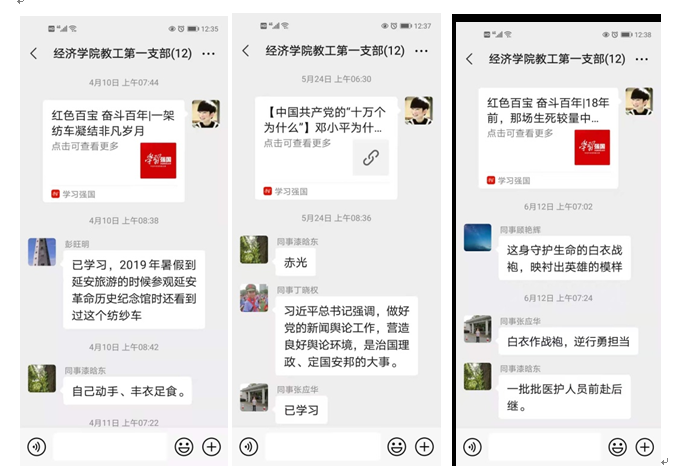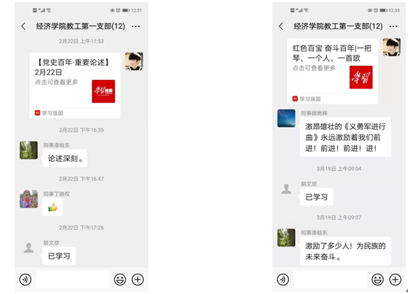 听完习近平总书记重要讲话,bw必威西汉姆联官方网站教工一支部积极想办法,除了利用召开支部大会的机会统一学习之外,大家一致认为可以采用微信形式,每天学习一篇党史知识。