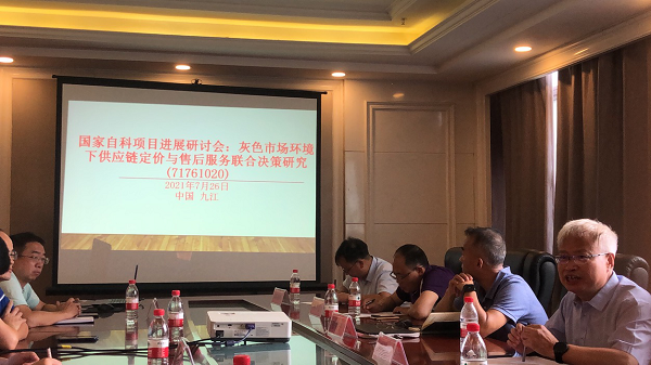 2021年7月26日下午,在bw必威西汉姆联官方网站濂溪宾馆会议室,依托洪定军副教授主持的国家自然科学基金地区项目“灰色市场环境下供应链定价与售后服务联合决策研究(71761020)”,召开项目进展及成果汇报研讨会。