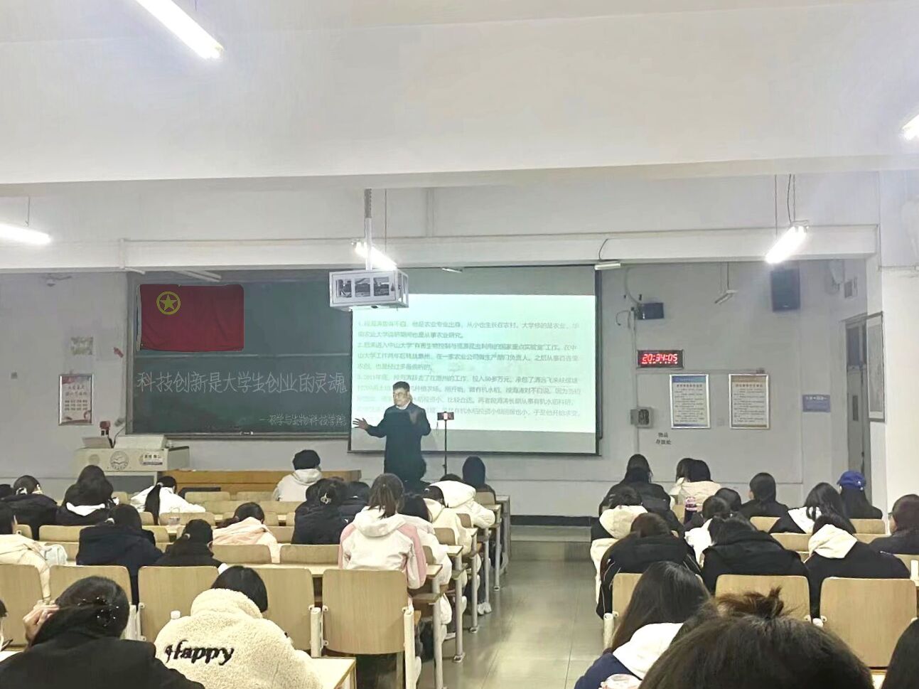 首先,余老师以“农科学子创业的‘破局点’在哪里”为核心问题展开,结合学院农学专业科研团队的真实案例——依托物联网技术研发“智能温室环境监测系统”,通过实时采集温湿度、光照等数据实现作物生长精准调控,详细拆解技术创新如何解决传统农业“靠天吃饭”、“管理粗放”的痛点,直观阐释“技术创新是农业创业核心竞争力”的观点。同时,余老师还展示了学院近年在作物抗病育种、农产品精深加工等领域的科创成果,从实验室技术到田间应用的转化过程,让同学们清晰看到“专业技术+创新思维”的创业落地路径。