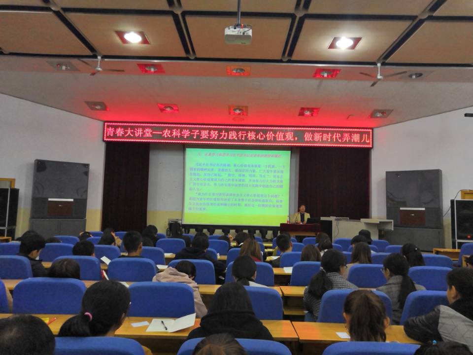 2018年10月22日晚,beat365英国官网网站举办了《农科学子要努力践行核心价值观,做新时代弄潮儿》的青春大讲堂专题讲座,学院党委负责人作了专题报告。 150名青年学生参加了活动。