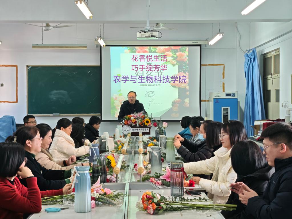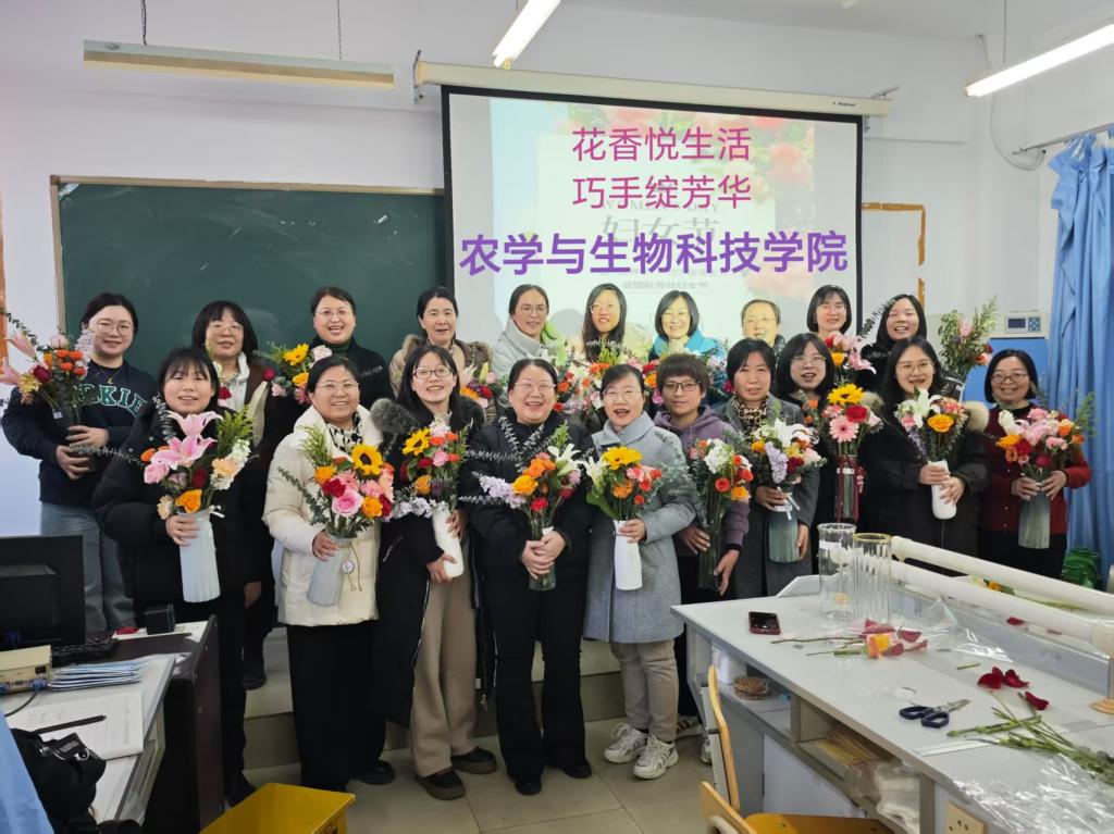 为庆祝“三八”国际劳动妇女节,丰富女教职工精神文化生活,弘扬新时代女性风采,3月6日下午,beat365英国官网网站分工会在农学实验室举办了“花香悦生活 巧手绽芳华”为主题的艺术插花活动。学院领导班子成员、工会委员及30余名女教职工齐聚一堂,在花香与创意中度过温馨节日。