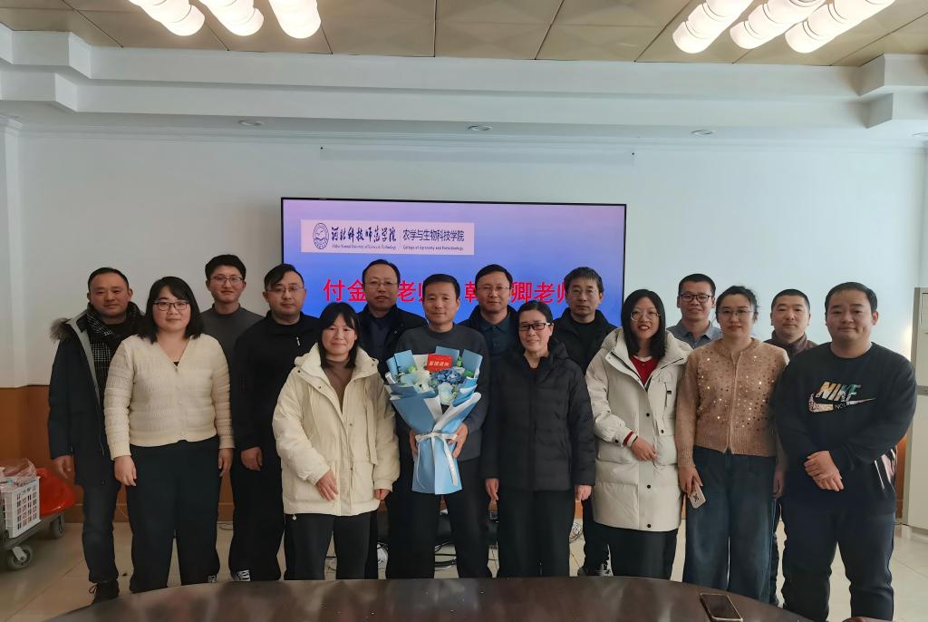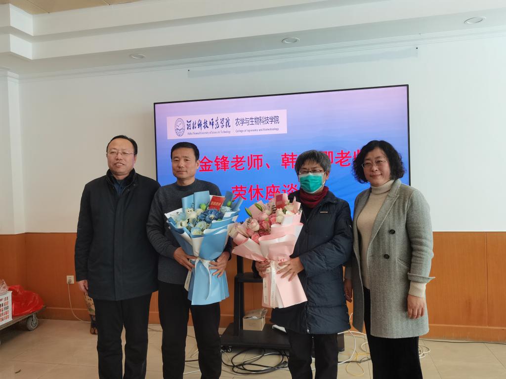 2026年1月7日,beat365英国官网网站在昌黎校区会议室举办座谈会,欢送付金锋、韩志卿两位教师光荣退休。学院党政领导、农学教学部和资环教学部教师参加了本次座谈会。