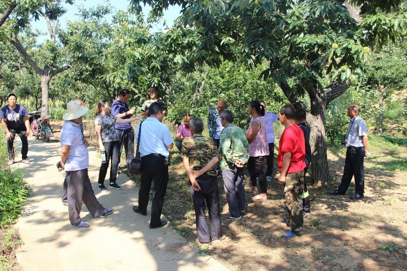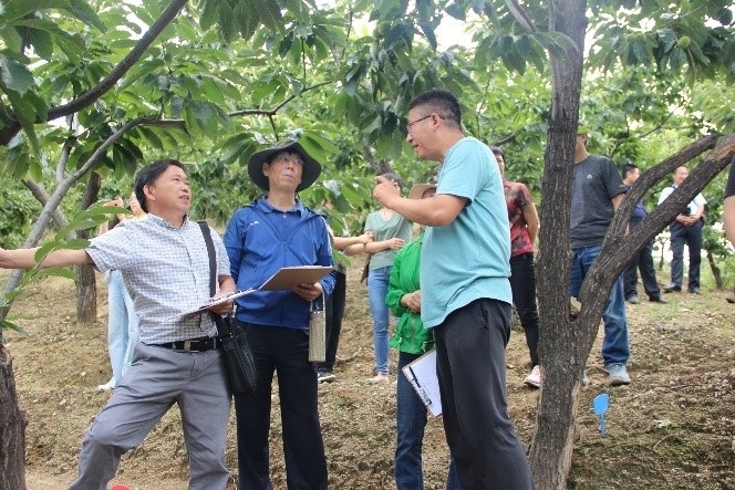 近日,板栗产业河北省协同创新中心“植物保护团队”在唐山市迁西县板栗“小叶病”的防控中取得阶段性成果,并邀请了河北农业大学专家曹克强教授、河北省农林科学院果树研究所贺丽敏研究员、唐山市自然资源和规划局张善江研究员以及我校科研处蔡慧副处长、郑桂如老师进行了板栗“小叶病”防治效果现场检测,迁西县工信局组织附近栗农进行了现场观摩。